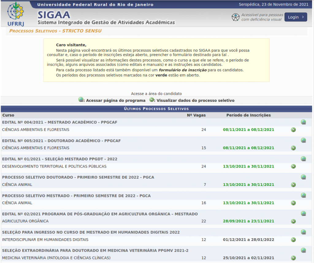 Lançado edital de seleção para a turma 2022 do Curso de Mestrado em Humanidades Digitais. Ao todo, são 12 vagas, incluindo 2 vagas para servidores da UFRRJ, 2 vagas reservadas a negros(as) (pretos(as) e pardos(as)) e indígenas, e 1 (uma) vaga para pessoas com deficiência. Inscrições de 01/12/2021 a 28/01/2022. Detalhes em https://sigaa.ufrrj.br/, opções Stricto Sensu e Processos Seletivos.